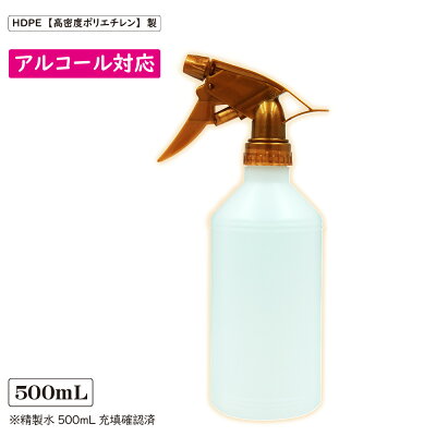 スプレーボトル 500ml アルコール消毒液対応 容器 高密度HDPE 霧吹き 酸やアルカリに強い 噴霧器材 液体 ボトル 除菌スプレー 小分け容器 トリガー容器 [ゴールド]