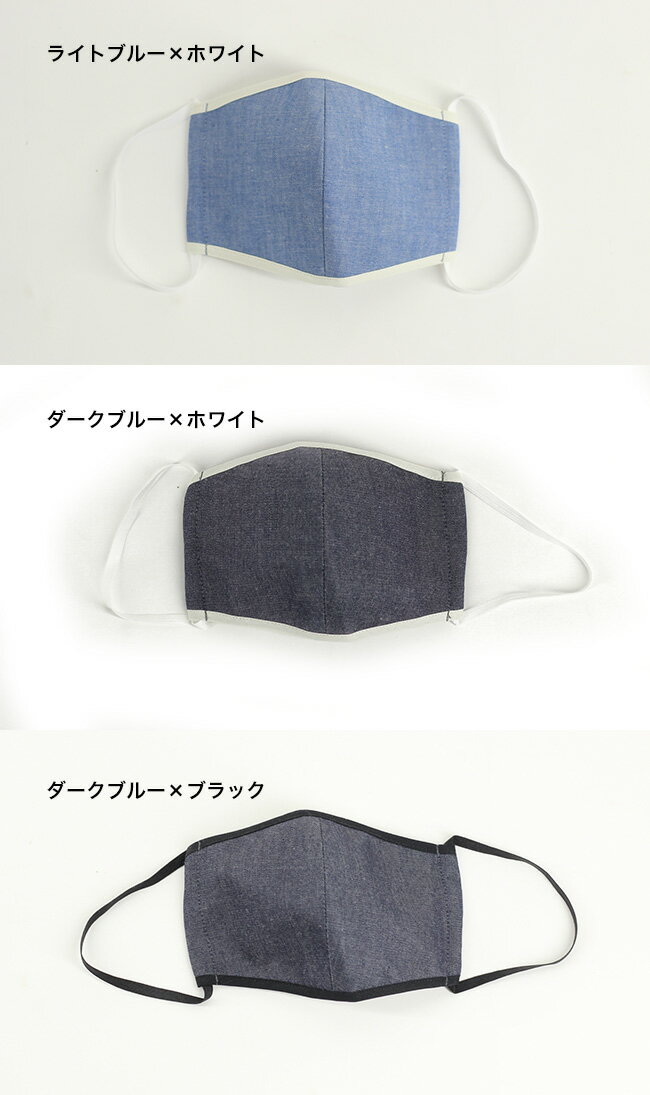 備後デニム シャンブレー デニムマスク 《同色2枚組》の解説 アパレルメーカーが丁寧に縫製したデニムマスクです。